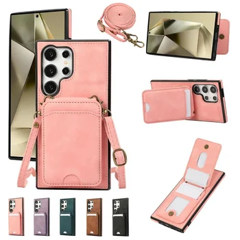 For Samsung S25 Plus S26 Edge Ultra Case Wallet with Crossbody Lanyards - Pink